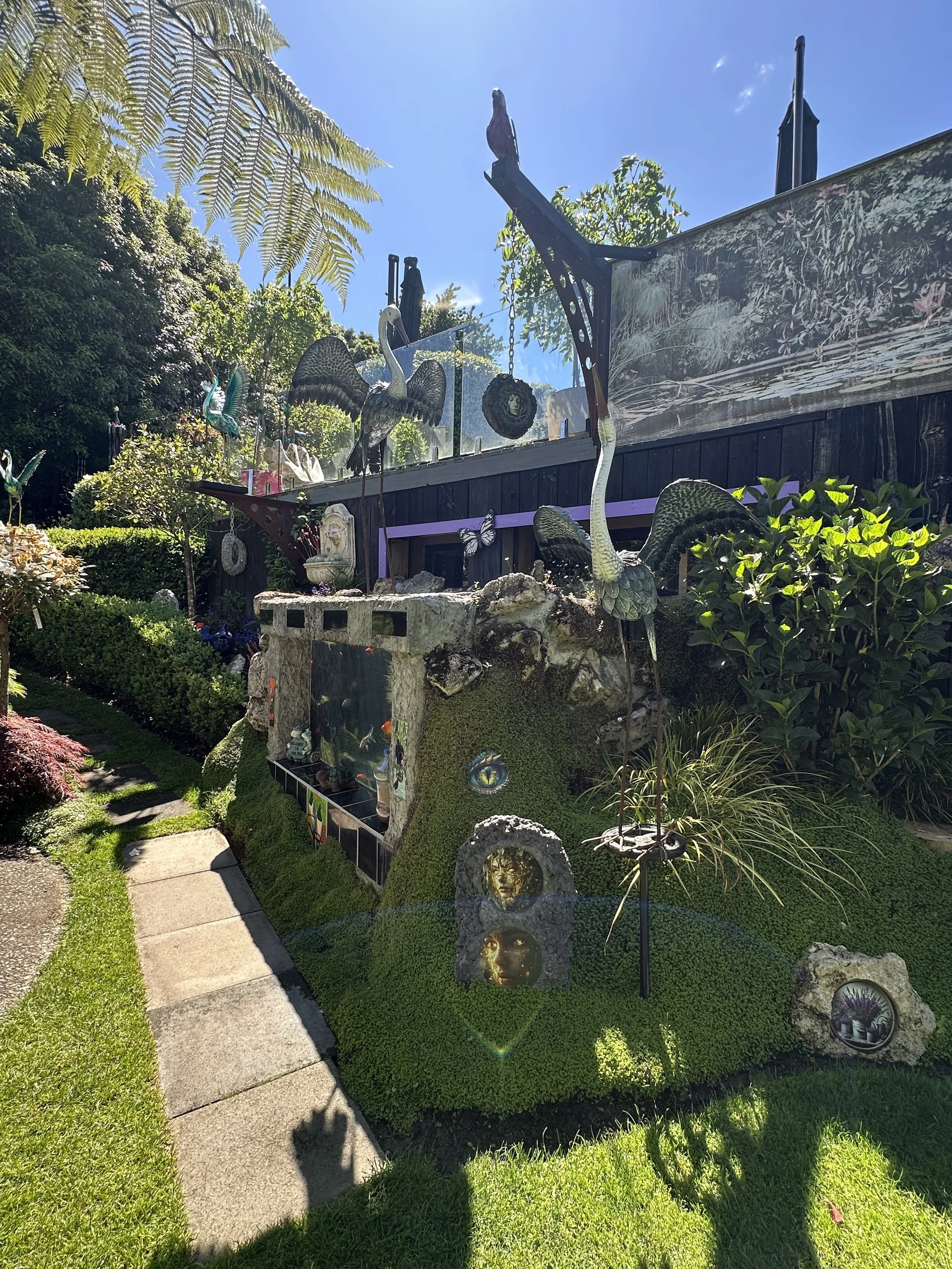 Nestled within a unique landscape, this enchanting garden is beautifully divided between a serene hillside and a lush, flat expanse, each offering its own distinct charm. The hillside garden winds gently upwards, showcasing over 150 vibrant Rhododendrons that burst into colour through the seasons. Their blooms form a breathtaking backdrop alongside native ferns and mature trees, creating a peaceful retreat for native birds, including the melodic tūī, which flit through the branches adding life and song to the air.