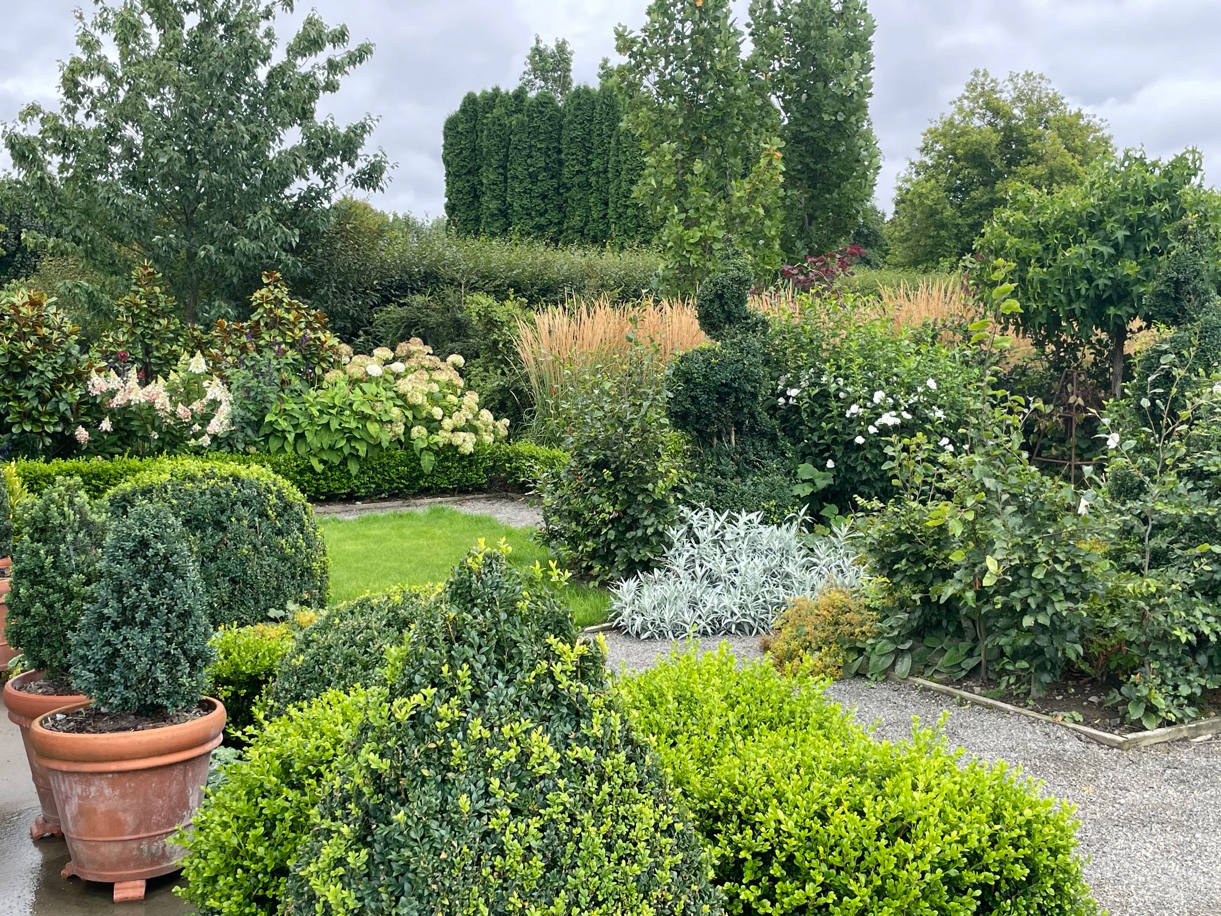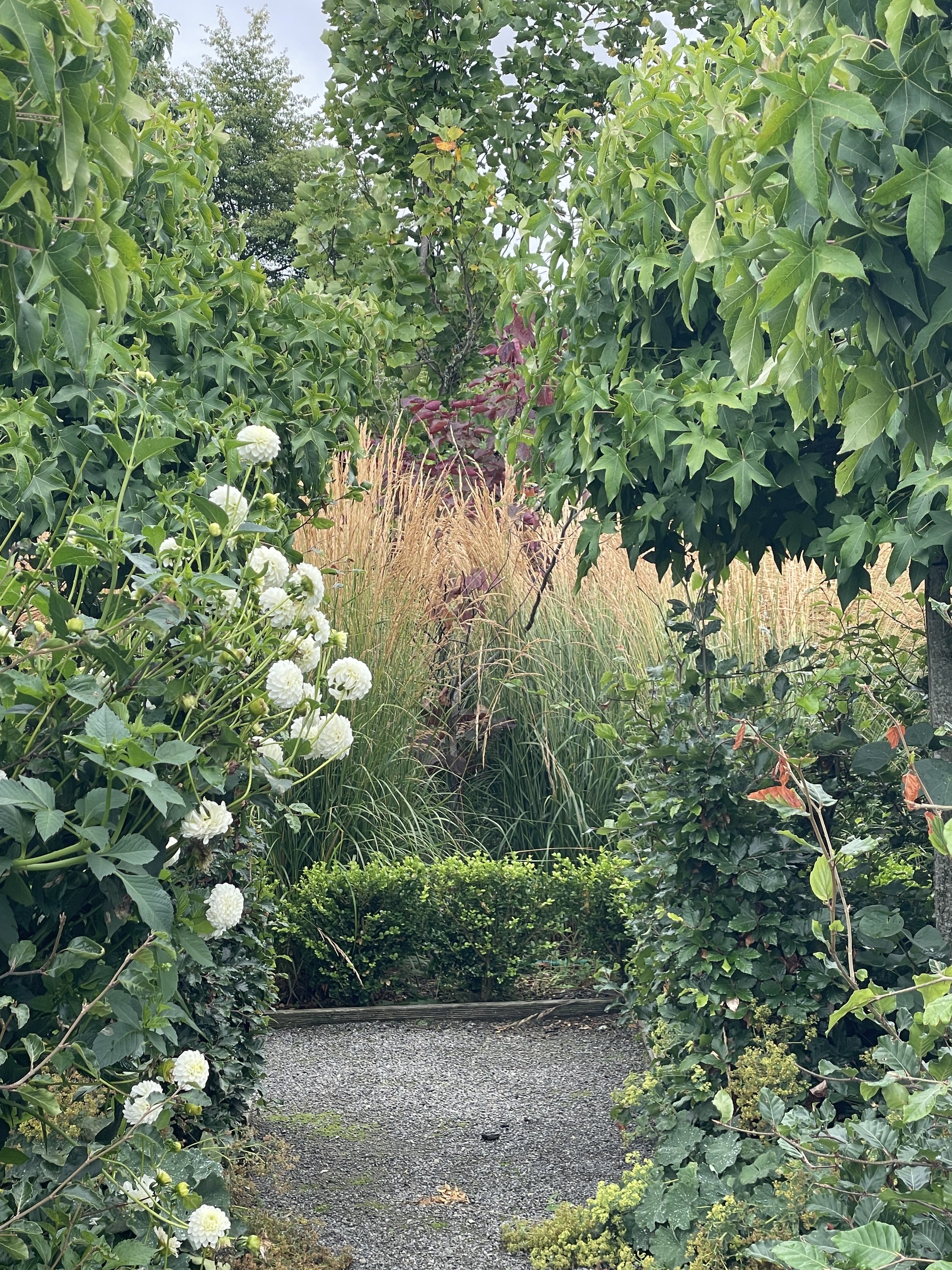 Hedging creates the quiet background. Unobtrusive Fagus sylvatica, Laurus nobilus and a palette of various buxus varieties divide the spaces with trees and topiary taking and adding form. Light and shadow live here, sparring throughout the seasons and time of day. Lush and green during both spring and summer, giving way to a smelter of rusts glowing in autumn. Then, there is the HA HA, an architectural illusion allowing, even encouraging, stock to graze close without gaining unwelcome access. Red Sheds has been built and the gardens developed, for the evolving needs of age. Enjoyment outweighs effort.